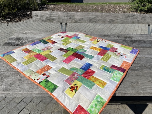 Forside » Gratis DIY og Inspiration » Patchworktæpper med danske bynavne 🇩🇰 » Babytæpper der er syet efter bytæpperne » Sønderborg baby restetæppe - maskin syet