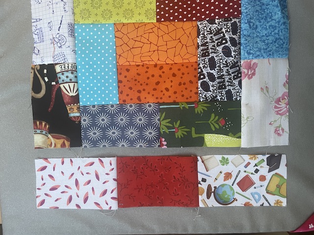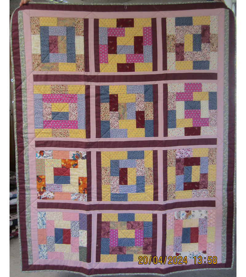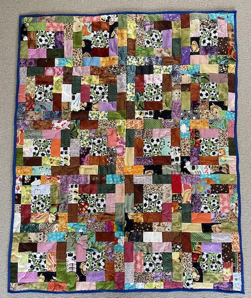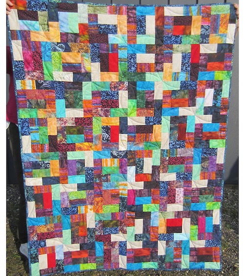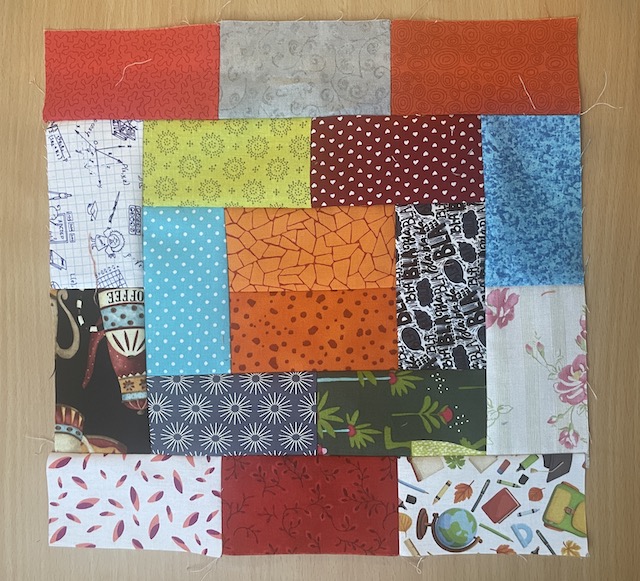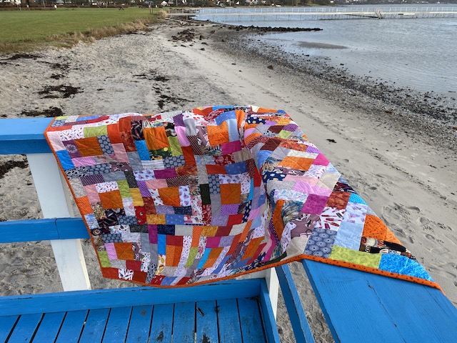 Forside » Gratis DIY og Inspiration » Patchworktæpper med danske bynavne 🇩🇰 » Restetæpper opdelt i de figure de er syet i » Restetæpper syet af 6 cm strimler » Sønderborg restetæppe - med kun 1 figur