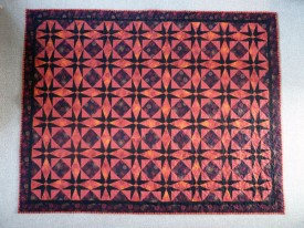 Mønster til Sölrun sengetæppe som måler 152 x 197 cm med kanter. Dette er et Pedari patchworkmønster, som indeholder papskabeloner, lige klar til at klippe ud