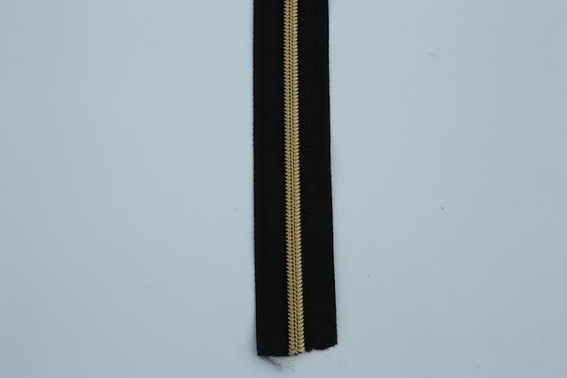 Sort 6 mm Lynlås i metermål med guld "tænder"