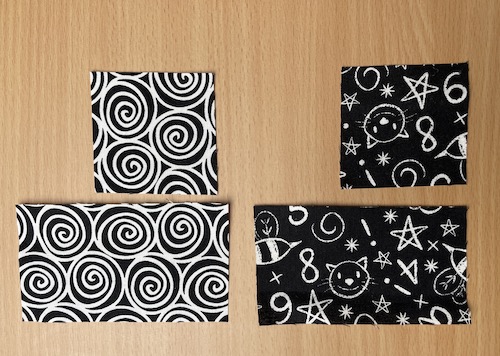 Så til en blok bruger jeg 2 stk firkanter på 6 x 6 cm og 2 rektangler på hver 6 x 10,5 cm.