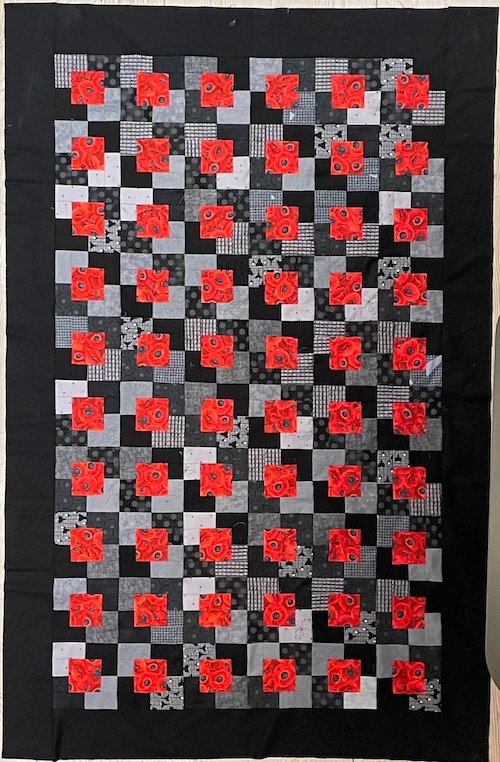 Bagefter har jeg syet en 6 cm sort kant på for at ramme hele tæppet ind.