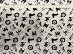 Flotte sort/grå/hvide patchwork stof i metermål.