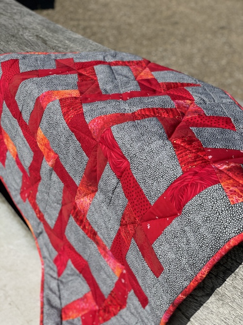 Forside » Gratis DIY og Inspiration » Patchworktæpper med danske bynavne 🇩🇰 » Sort og røde stoffer giver smukt Ry babytæppe Sort og røde stoffer giver smukt Ry babytæppe Mange kan godt synes at et restetæppe er "for vildt", den anden forskel er, at der er sy i to en rektangler og ikke som det lyserøde, hvor det er to firkanter på hver 6 x 6 cm Læs mere om Ry tæppet her Materialer:Til hver blok er der brugt:Bundfarven 4 rektangler på 6 x 10,5 cm og helt lige sådan i rød stoffer. I alt i dette sorte/røde baby tæppe er der brugt 64 sorte og 64 røde rektangler. = ca 7 strimler af hver a 6 cm Samt selvfølgelig stof til kanter, lukkekant, bagside og mellemfoer. ![]() Foto taget ved Ejer Baunehøj Hvis du heller vil håndsy dette tæppe laver du bare alle dine papskabeloner 5 x 10 cm. Husk + 1 cm sømrum. Men syet helt på samme måde. Og vil du heller sy det i inch på symaskine - kan du nemt se her hvordan du omregner det. Foto taget ved Ejer Baunehøj Håber dette giver dig en masse ideer og lyst til at sy dit egen baby restetæppe, enten i hånden eller på symaskine. Ja du kan jo også bare fortsætte til et stort tæppe..... ![]() Foto taget ved Ejer Baunehøj Rigtig god fornøjelse med at sy dette babytæppe. Det er jo tænkt som et gratis mønster/vejledning - en gave til dig fra HANNES patchwork. |
