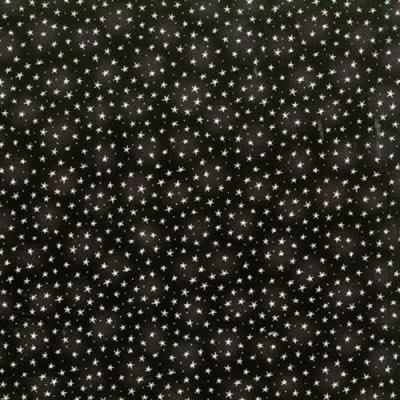 Dette meget flotte patchwork stof med sort meleret bundfarve og masser af små stjerner