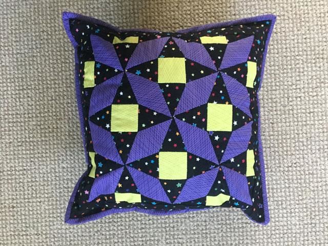 Dette patchwork mønster til Stine Pude med kanter,  indeholder papskabeloner lige klar til at klippe ud.