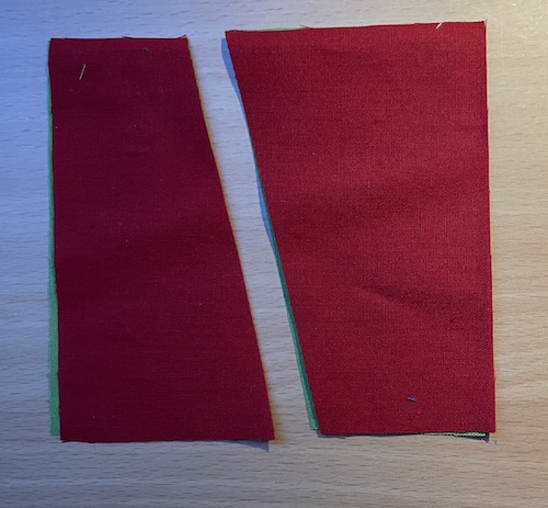 Husk at du måske nemt kan komme til at spejlvende dit stof - men bare du gøre det på begge stykker sker der jo heller ikke noget ved det. De skal jo "bare" danne en firkant til sidst.