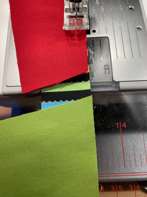 Og så blander jeg dem bare når jeg syr dem sammen.