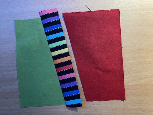 Du skal ikke være nærig med det stribet stof, så dine vinkler passer sammen, så de skal syes sammen.