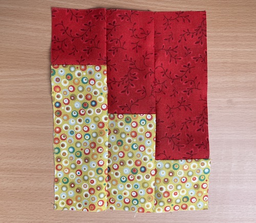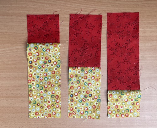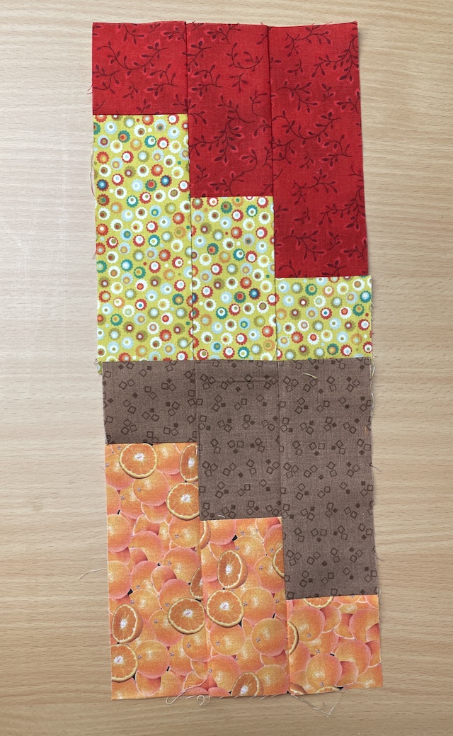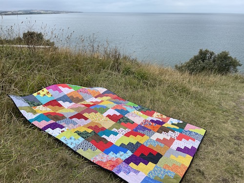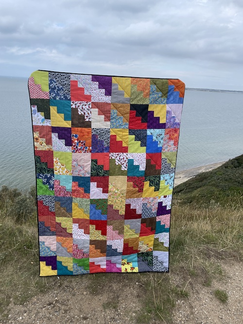 Forside » Gratis DIY og Inspiration » Patchworktæpper med danske bynavne 🇩🇰 » Restetæpper opdelt i de figure de er syet i » Restetæpper syet af kun firkanter » Strimler som trapper - Kolding tæppet.