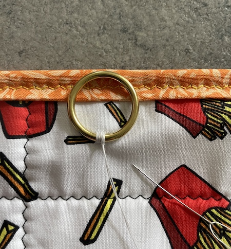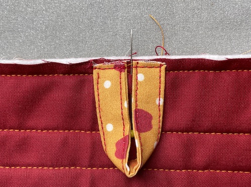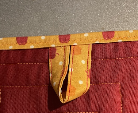 Forside » Gratis DIY og Inspiration » Projekter - patchwork for alle » Grydelappe ræs til Projekt Puttetæpper 2024 » Stropper til syet grydelapper - flere muligheder Stropper til grydelapper - flere mulighederNår man har syet et par grydelapper skal de jo ofte op at hænge, derfor skal der jo en strop i.Der findes flere måder at gør dette på. Her kommer der nogle muligheder, jeg håber der kan bruges. Nogle gange gør "mønster" at det er oplagt at hænge dine grydelapper i et hjørne og andre gang skal de "hænge lige" på midten af grydelappen. GardinringeEn nem løsning er at sy en gardinring i messing på bagsiden, som her på billede.Her er valgt at man ikke kan se den fra forsiden, men ønskes det - sættes den jo bare op i kanten. Syet stropperDet er også nemt at sy en strop. Her brugt en strimmel på 6 x 10 cm pr grydelappe. Pres ind fra begge sider. ![]() Sy nu i begge sider af stroppen, gerne med en kontrast farve, så det giver et smukt udtryk. ![]() Sy den nu fast på bagsiden "imellem kanten og lukke kanten. Så du få gemt enderne. ![]() Her dækker lukke kanten så stroppen flot på bagsiden. Hvis du "vender" dine grydelapper, ved at sy hele vejen rundt, skal du kusk at lægge din indimellem for og bagsiden. Der findes masser andre måder at sy stropper på. Du gør hvad du synes der virker for dig. Rigtig god sy lyst |