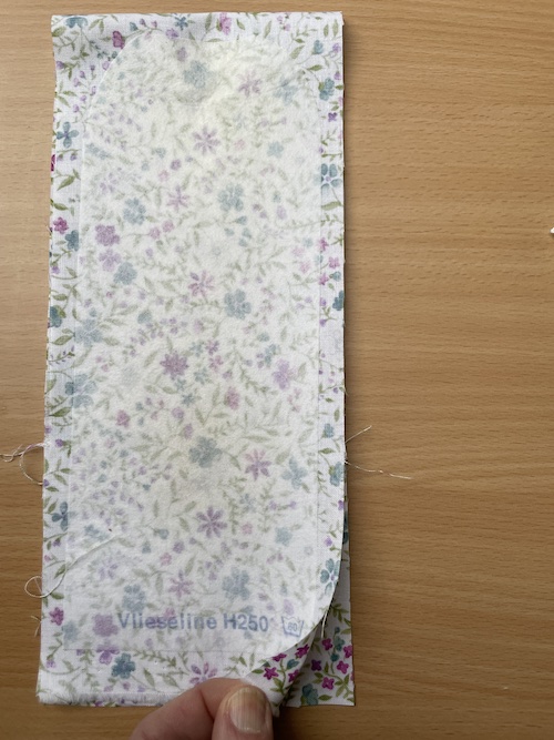 Stryg nu dit vliseline fast på bagside af den ene stykke patchworkstof og læg de to stykker stof ret mod ret.