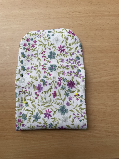 Start med ombuk i den ene side og sy op og rundt i "klappen" og slut ned ved fold i den anden side.