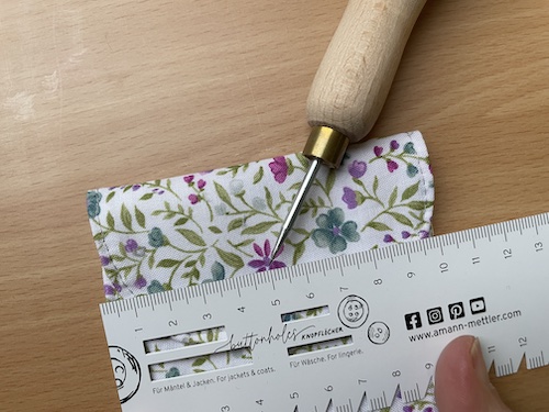 men lader et lille vende hul være på den ene side, ca 3 cm fra et fold.