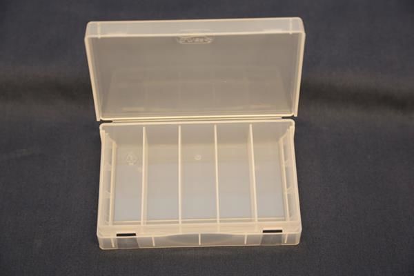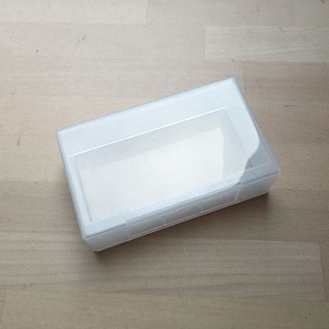 En lille "mælkehvid" plast box, måler 13,5 x 7,5 x 3 cm er perfekt til at opbevare alle sine små dele som nåle, knapper, perler, samt dimser og dutter.