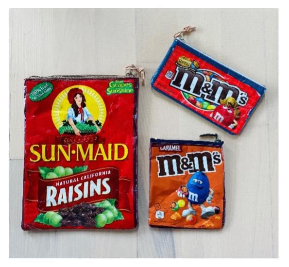 En kort vejledning i at lave nyt ”stof” af slikpapir og bogbinderplast med tekst og billeder.