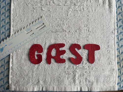 Forside » Gratis DIY og Inspiration » Gratis vejledninger - trin for trin. » Små sjove projekter også for nybegynder » Sy navn på gæste håndklæder - super nemt DIY Sy navn på gæste håndklæder - super nemt DIY - trin for trin.Ja se lige denne super søde og meget enkelt ide til dine gæste håndklæder.Ja det kan jo også være et alm håndklæder, du skriver hvem der "ejer" dem, mor, far, Peter og Gyda Her er valgt den som alle gæster kan bruge - nemlig gæste håndklædet. ![]() Jeg fandt nogle "fyldige" bogstaver på nettet som jeg printet ud og huskede at spejlvende. Tegnede det over på vlisofix - fordi alle min er samme stof var det jo nemt - men det kunne jo lige så godt være 4 forskellige farver eller 4 blå med et lille mønster - det er jo helt op til dig. Som du kan se var jeg "nød" til at selv trylle et Æ frem.... Klippede mine bogstaver lidt groft ud og strøg det fast på bagsiden af mit stof. ![]() Derefter klippede jeg hver bogstav ud og pillede mit papir af ( bagsiden af vlisofixen) ![]() Mine gæster håndklæder er de små fra Ikea - jeg fandt stedet hvor de skulle side. ![]() Lagde et viskestykke over og strøg dem fast. ![]() Nu er det jo så bare at lave knaphul sting eller zigzag sting hele vejen rundt om hvert bogstav. Og wupti så er mit lille gæste håndklæde færdigt. Det er da nemt. Og måske lige noget for dig ??? Det er da en super værtinde gave ![]() Rigtig god fornøjelse med denne Fordi den er gratis må du meget gerne fortælle omkring dig, |