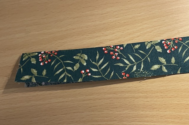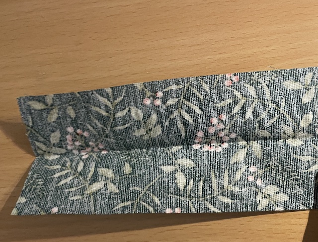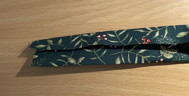 derefter bukkes de ind fra hver side som et kantebånd, så trævl kanterne er "gemt" inden i stoffet.