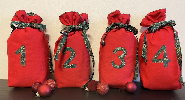 Forside » Gratis DIY og Inspiration » Gratis vejledninger - trin for trin. » Sy selv 4 nemme Advents gave poser