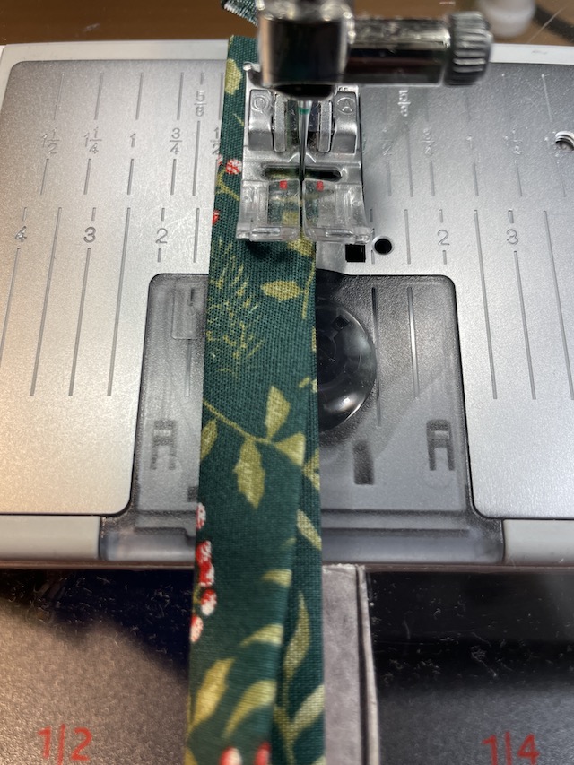 Derefter presser jeg dem nemt inden jeg syr en pyntesøm på begge sider af båndet