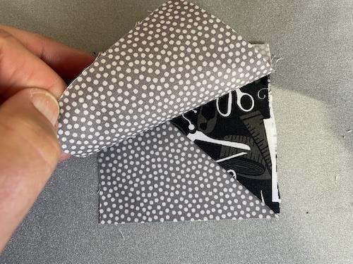 Forside » Gratis DIY og Inspiration » Gratis vejledninger - trin for trin. » Bogmærker - sy selv flere nemme muligheder DIY » Sy super nemme trekanter som bogmærker - DIY. Sy super nemme trekanter som bogmærker - DIY.Disse trekanter er super nemme at sy - og perfekt til at sætte i dine bøger hvor du er kommet til. Derved undgår du også æseløre i dine bøger. Super nemt at sy og at bruge. Du starter med 3 firkanter i samme størrelse - her er alle 8 x 8 cm. Det mørke stoffe stof er presset så det danner en trekant. ![]() Start med at lægge den ene firkanter med retsiden opad og derpå den presset trekant. ![]() Og til sidst den sidst firkant med vrangsiden opad. ![]() Sy nu hele vejen rundt, men lad et lille hul stå åbent så du har noget at vende det hele igennem. ![]() Klip nu lidt af hvert hjørne, så det ikke fylder for meget. ![]() Vend nu det hele og pres det færdige syet bogmærk let. Stik evt på de to sider uden trekanter eller sy det lille hul sammen pænt i hånden. ![]() Og wupti er dit nye bogmærke klar til brug. Her sat i bogen "Patchwork til dig og mig" ( forsiden) Og her bagsiden af bogmærket. Du har også en mulighed for at sy et andet bogmærke med elastik og en knap som her på billede. Du finder den gratis vejledning her ![]() Rigtig god fornøjelse med at sy.Det er jo tænkt som et gratis mønster/vejledning - en gave til dig fra HANNES patchwork.Håber du vil fortælle hvor du har dit mønster fra, da det jo er min løn for at give dig dette gratis vejledning. |