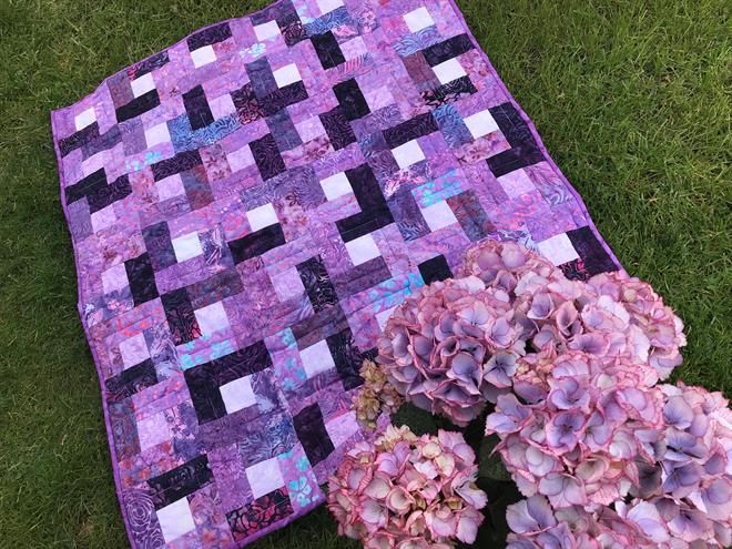 med at sy 4 aflange rektangler sammen om en lille firkant.
