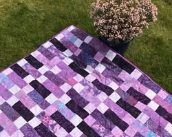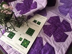 med at sy et flot tæppe med firkanter på firkanter som kan danne en "ring"