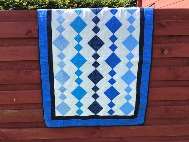 Her er en lys brugt som bundfarve og 4 forskellige blå stoffer, men kunne jo også være alle dine blå rester.
