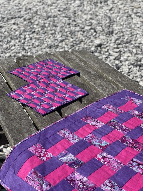 Forside » Gratis DIY og Inspiration » Patchworktæpper med danske bynavne 🇩🇰 » Dækkeservietter mm i stofrester efter bynavne tæpper » Thorsø dækkeservietter i kun 3 farver - gratis