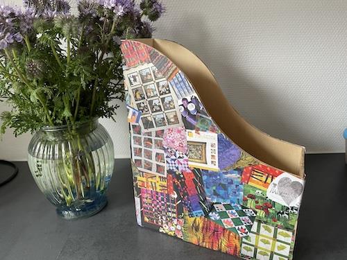 Forside » Gratis DIY og Inspiration » Kun for sjov - patchwork på den sjove måde » Tidsskriftsholder med patchwork billeder - gratis DIY Tidsskriftsholder med patchwork billeder - gratis DIYAt lave noget personligt med patchwork kan vi vist alle godt lide. I en genbrugs forening fandt jeg denne tidsskrift kassette til kun 20 kr. Da min lim også kan bruges til træ var det jo bare at gå igang, som de dåser der også er lavet med enten patchworkstof eller billeder som denne. ![]() Her beholder/vaser også med genbrugsstof og billeder Gratis vejledning til dåser med patchworkstof finder du her ![]() Og trin for trin med papir finder du her ![]() Tidsskriftsholder med patchwork billederNu startede jeg med at klippe en masse flotte billeder ud af et gammelt Kludemagasin*( Dansk patchwork forenings medlemsblad.) Men du kan jo også sætte strikke billeder eller broderi billeder på, så er det jo super nemt at se hvad du har i dine forskellige kassetter. ![]() Startede på den ene side med at pensle lim på ![]() Og lægge mine billeder på i det ønsket mønster ![]() Om hjørne bukkede jeg mine billeder ud om og limede dem godt fast, men i toppen lod jeg dem gå lidt ud over, så jeg bagefter kunne skære det helt ren med en hobbykniv. ![]() Som du kan se valgt jeg at lade "den stå ren inden i " - men kunne jo lige så godt have fortsat ![]() Og wupti har jeg en super flot personlig tidsskrift holder til alle min patchwork blade. Tro den skal i butikken at stå. ![]() Håber du kan bruge denne patchwork decoupage ide til noget. Send gerne ting af dine billeder så andre også kan se dine flotte kreativiteter. Rigtig god fornøjelse*Jeg undskylder hvis nogle føler sig trådt på, da jeg har klippet i deres tæppe eller andres tæpper.og taget dette ud af sin sammenhæng. Alle billeder er fra Kludemagasinet, som Dansk patchwork forenings medlems blad. |