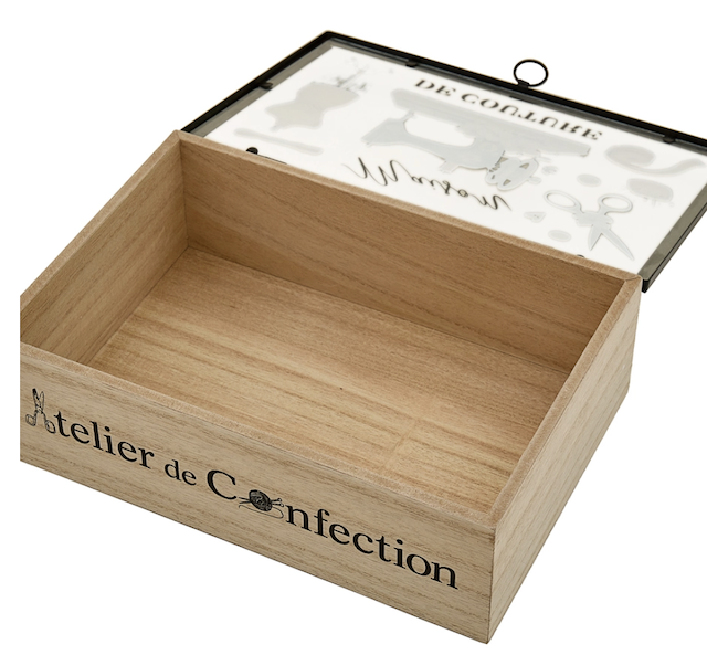 træboks i MDF og finer med acryl låg – ideel til patchwork og sytilbehør