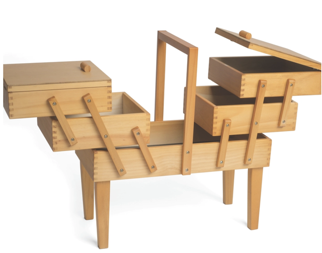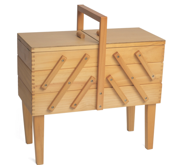 Prisen er for et Milward sybox med ben træ som måler 21,2 x 41,9 x 44,7 cm
