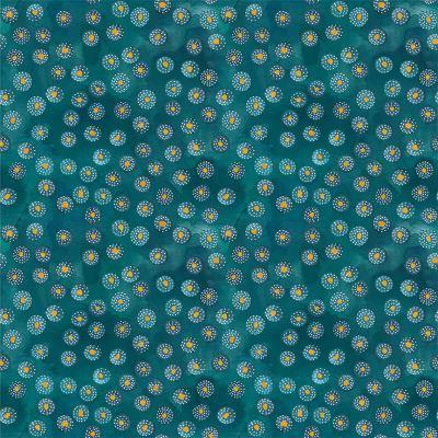 Turkis blågrøn patchworkstof - Mørke cirkler er et meget smukt 100% bomuld patchwork stof der er 110 cm bred.