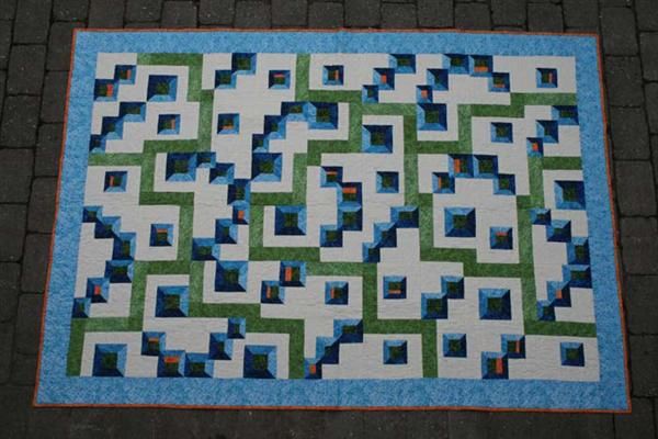 Mønster til Ud i det blå..... som måler 140 x 200 cm med kanter. Dette er et Pedari patchworkmønster, som indeholder papskabeloner, lige klar til at klippe ud