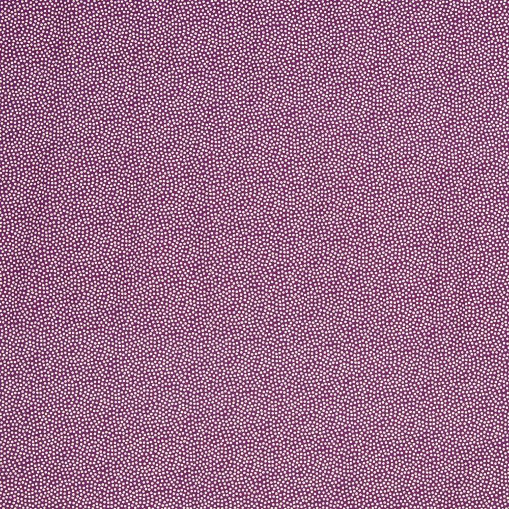 Flot bred mørk lilla bomuldsstof med hvide prikker jævnt fordelt på stoffet.