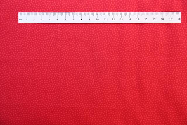 Flot bred rød bomuldsstof med lyse prikker jævnt fordelt på stoffet.