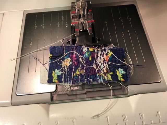 Altså at din symaskine "spiser" dit stof med en kæmpe stor klump tråd og stof, total sat fast i din symaskine.