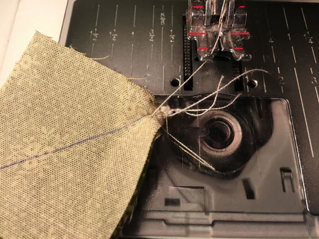 Så du lægger denne starter ind midt under din trykfod og starte med at sy til kanten af starteren.