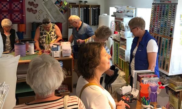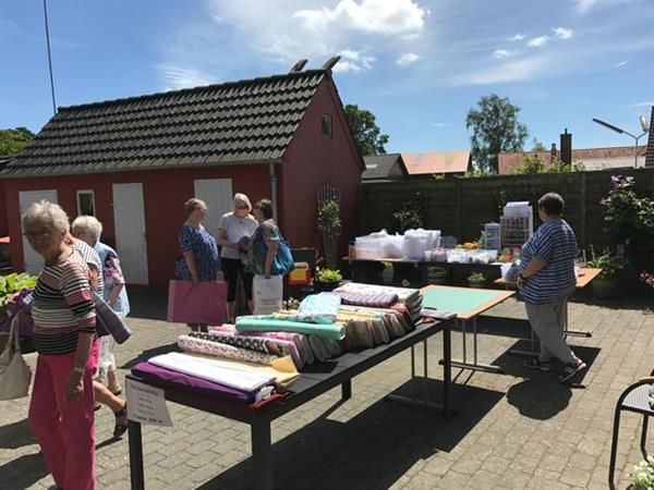 Den lille patchworkbutik var åbent med masser af nyheder og på terrassen, var der fyldt med super gode tilbud, i det meget flotte vejr.