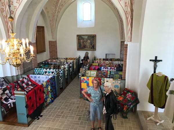 Der var ud stillet over 140 patchworks tæpper i hele kirken. I alle farver og i alle størrelser.