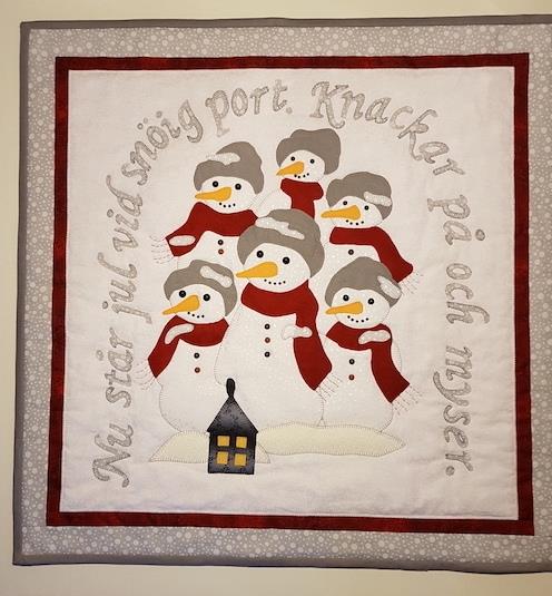 Hej Hanne Har netop syet denne  - Solbritt og Maria design. Jeg elsker sne ( og Sverige), så da der ikke kommer noget hvidt fra oven, så må jeg selv sørge for lidt vinterhygge. Øjne og mund er halve perler der er limet på.  God jul🎅  Hilsen Vibeke