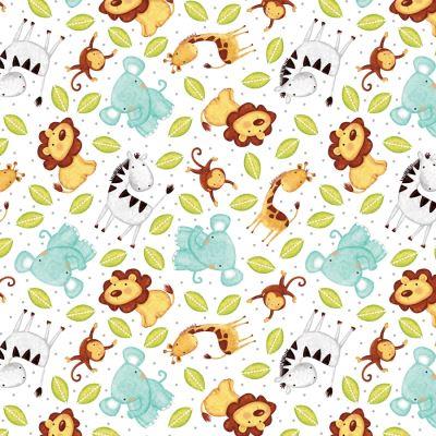 Dette smukke lyse patchwork stof har masser af vilde dyr i mange farver og i alle retninger.