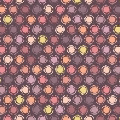 Dette meget flotte patchwork stof har masser af cirkler/sol i flotte afstemte farver