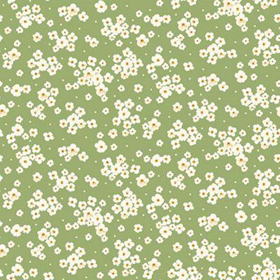 Med sit flotte grønne bundstof og de små hvide mini blomster skaber dette stof et smukt farvespil.