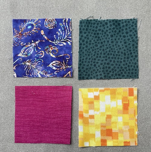 4 firkanter på hver 6 x 6 cm i reste farver,