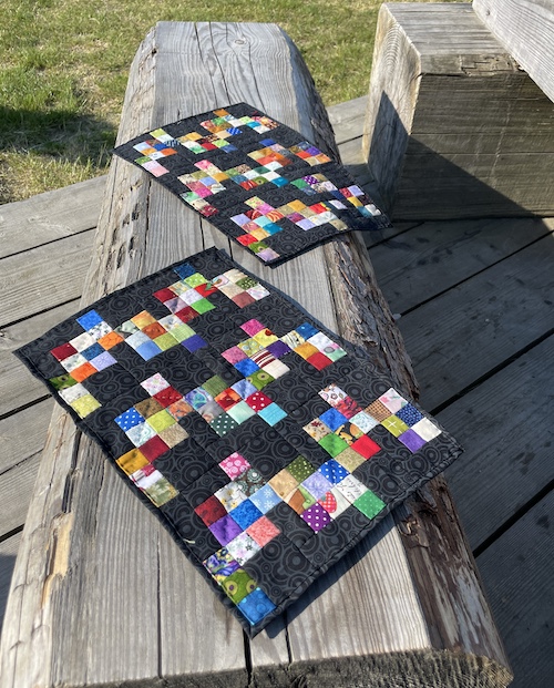Du kan også håndsy i mini firkanter et par dækkeservietter som her